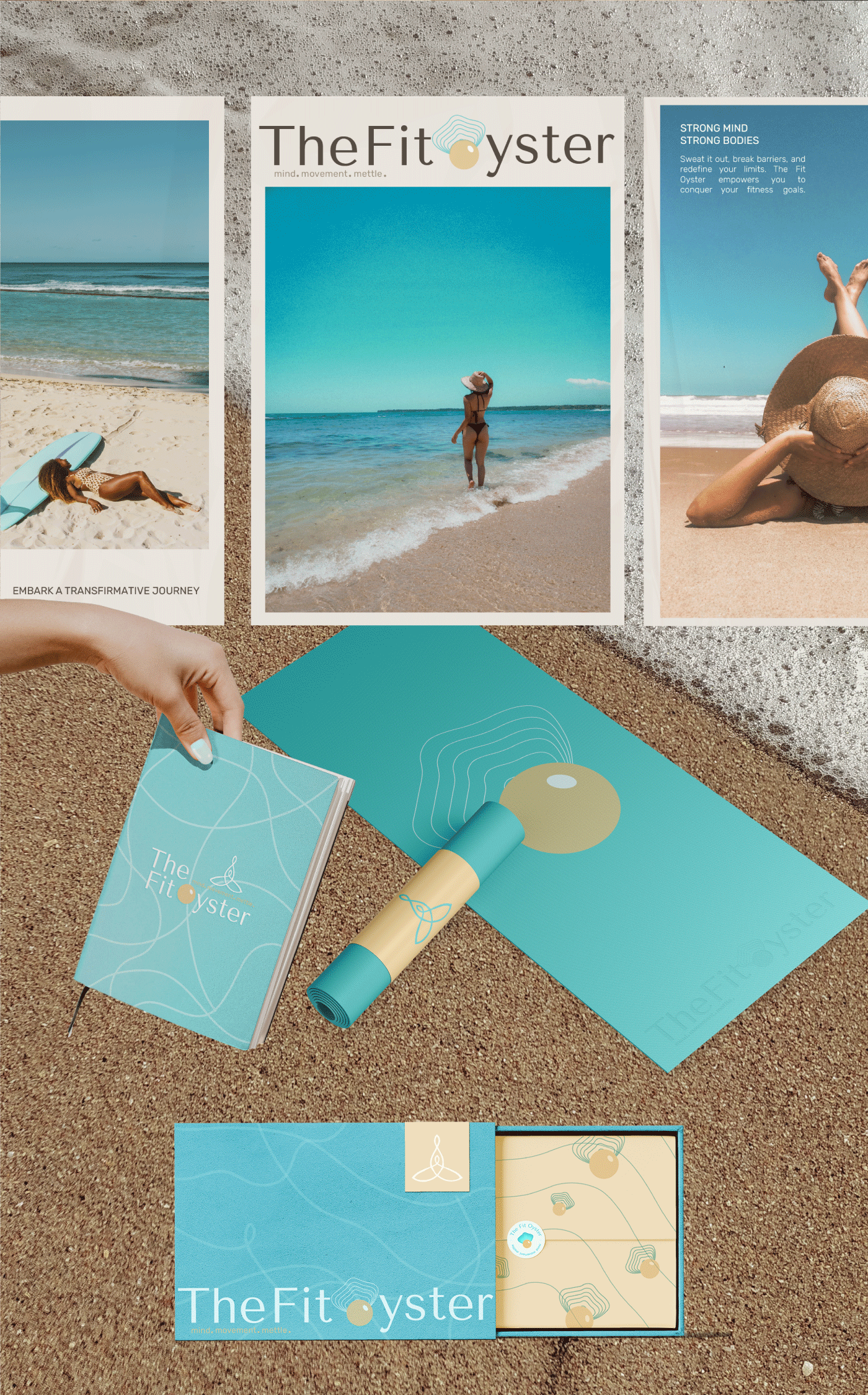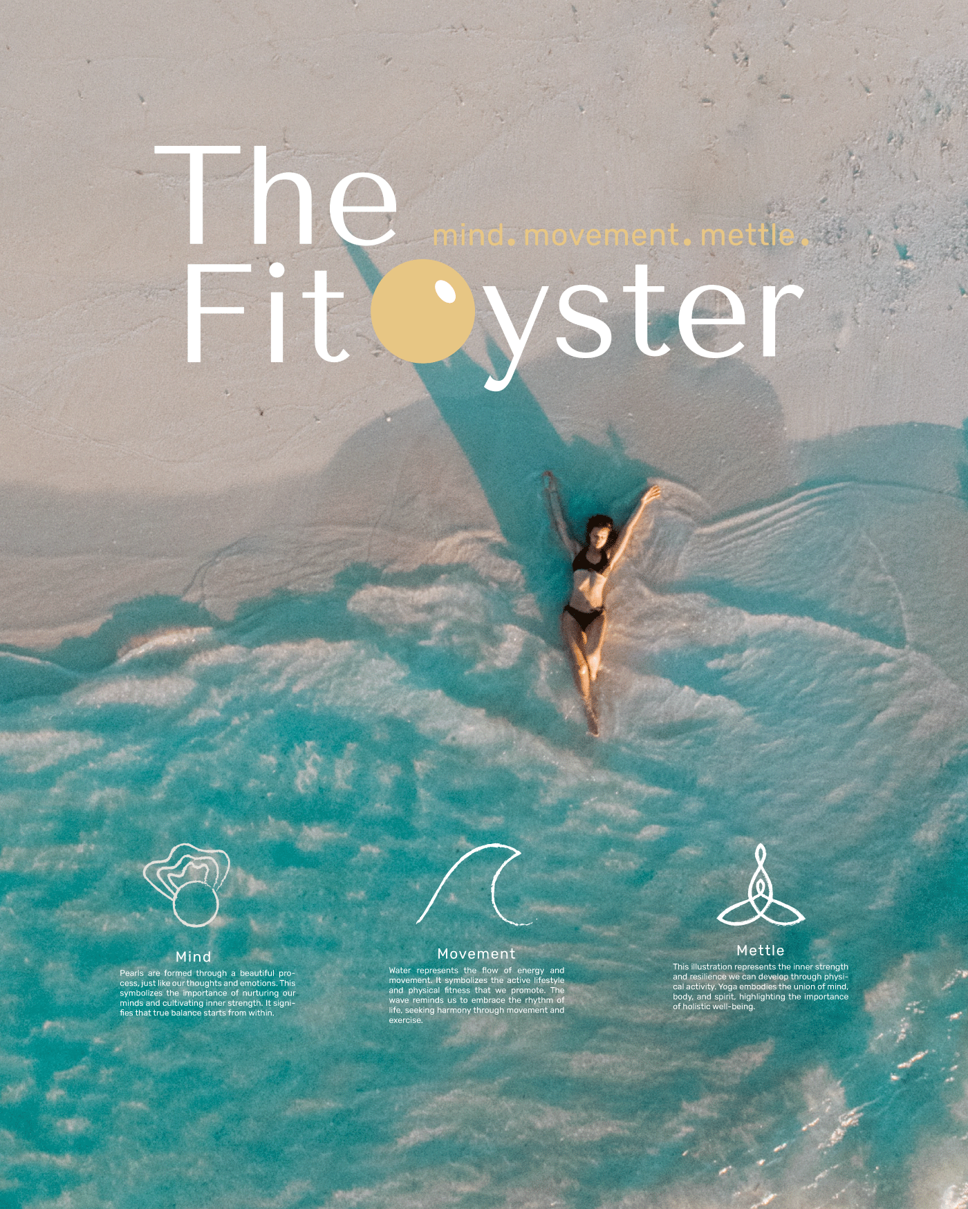 The Fit Oyster supports your movement journey through active gear, wellness retreats and a community that celebrates you. When we had our pre-project call, Kripa told us that empowering woman to ooze self expression has always been her dream. One element that spoke to her was an Oyster. Featured in mythological paintings, an oyster symbolises protection, balance, peace and inner self. The tagline, Mind, Movement and, Mettle signifies just this. We knew we had to involve an oyster in our branding.